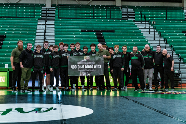 Harrison High School Head Boys Wrestling Coach earned his 400th career dual meet win as a head wrestling coach.